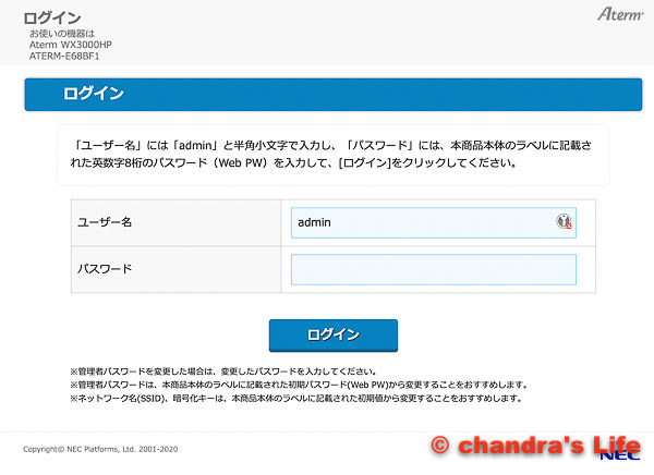背面シールに 色々 デフォルトパスワードとか書いてあります