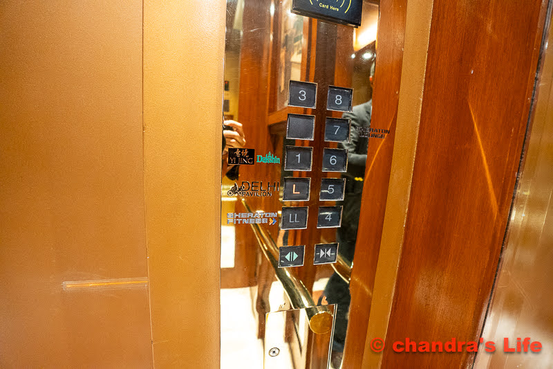 シェラトン・ニューデリーの Delhi Pavilion その前に レストランの表示 紋様がインドっぽいですね